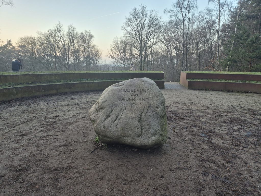 Verderop kom je al snel bij de volgende highlight, namelijk de Notarisbank, een imposante bank met een interessante geschiedenis.  Een paar stappen verder ben je al bij het middelpunt van Nederland. In hoeverre dit echt het middelpunt is, is iets waar nog over gediscussieerd wordt, maar toch een leuke plek om langs te lopen!