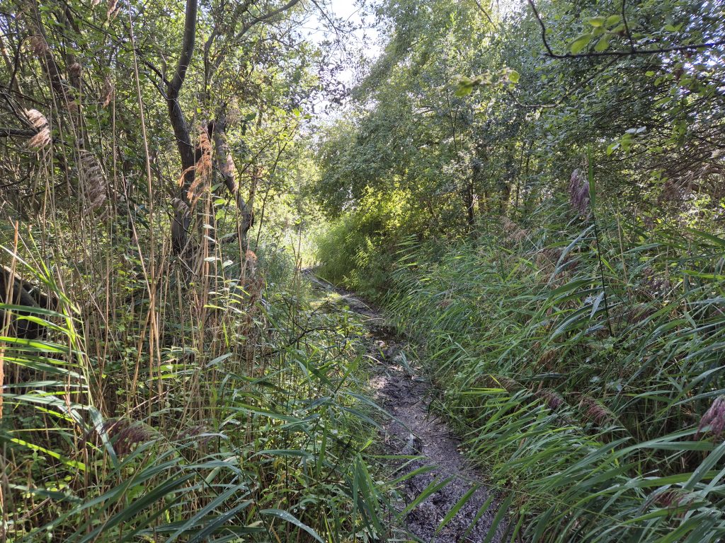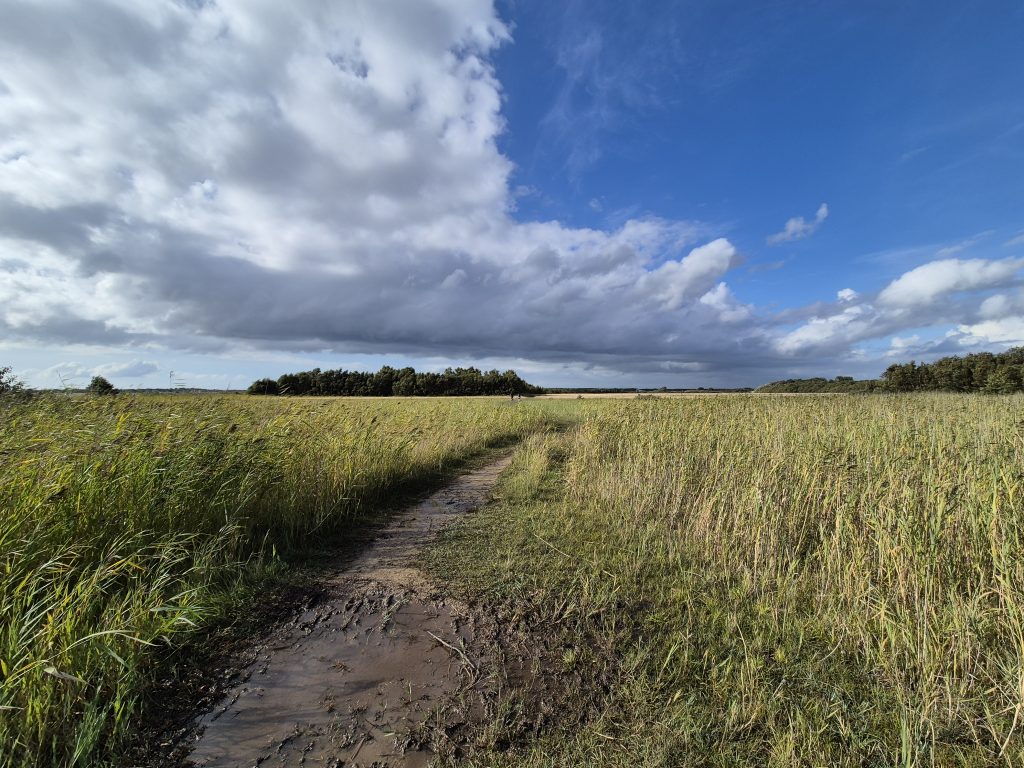 Hier begint het mooiste stuk van de route. Dit is een natuurlijk kweldergebied en kan daardoor erg drassig zijn. Goede waterdicht schoenen zijn geen overbodige luxe op sommige plekken.
